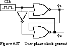 Generating nonoverlapping clocks is not particularly difficult, as the circuit of Figure 6.37 and the timing diagram of Figure 6.38 demonstrate.