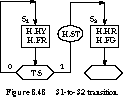leaving state S1, namely that TS is asserted. The sixth and seventh