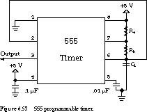 and capacitors between the 555 timer's pins, as shown in the figure.