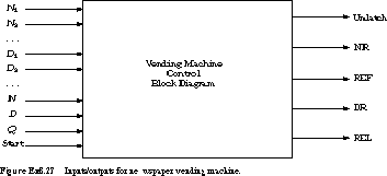 the vending machine controller of Figure 8.25 as a synchronous Mealy machine