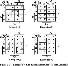 The K-maps for the D flip-flop implementation are shown in Figure 8.14.