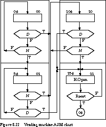 show the ASM chart for the vending machine in Figure 8.22.